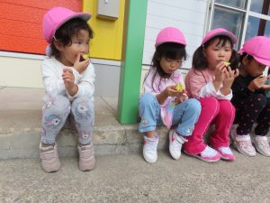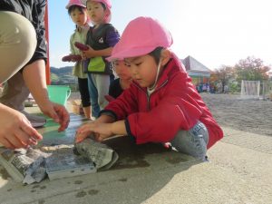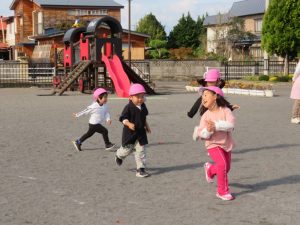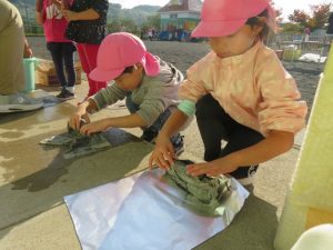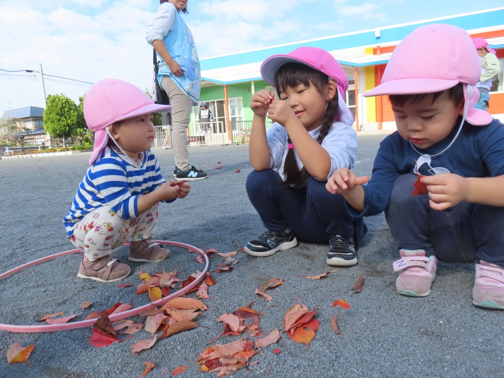 落ち葉を集めて焼き芋ごっこをしている子達もいて、