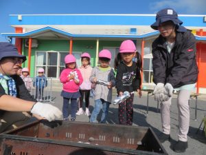 今日は園庭で焼き芋をしました🍠