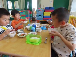 小さいお友達も食べやすい大きさを考えて切ってくれました(*^-^*)