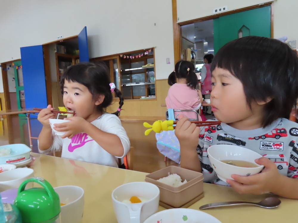 給食の時間、たっぷり入ったスープのはんぺんを、美味しそうに頬張っていた子ども達でした😋