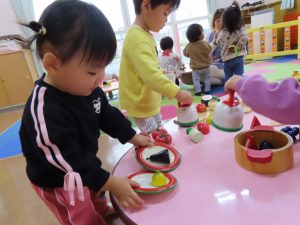 お部屋ではままごと遊び。