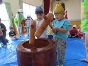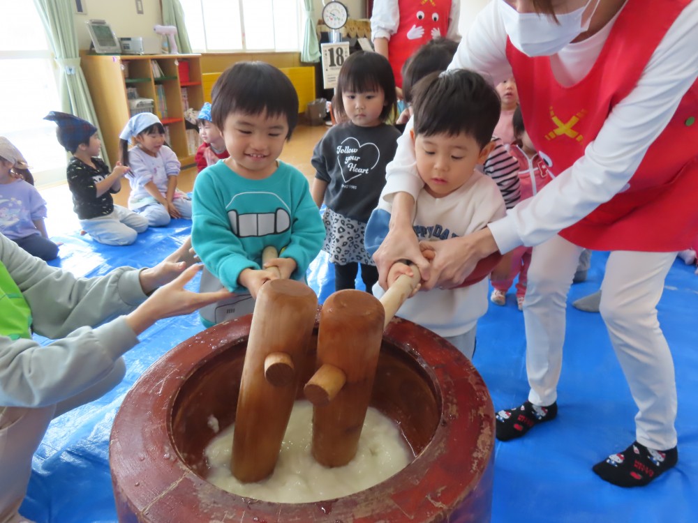 お正月に向けてもちつき会をしました。