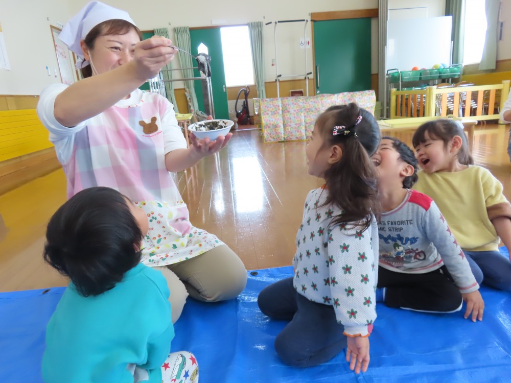 おもちの伸びる様子がとってもおもしろかったみたいです😊