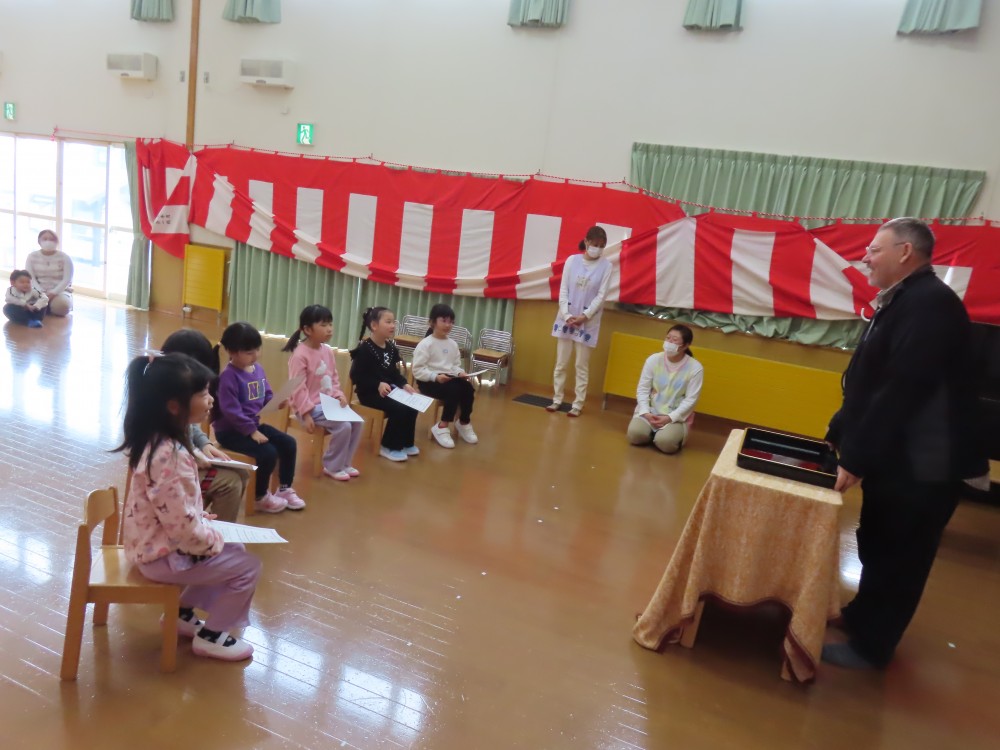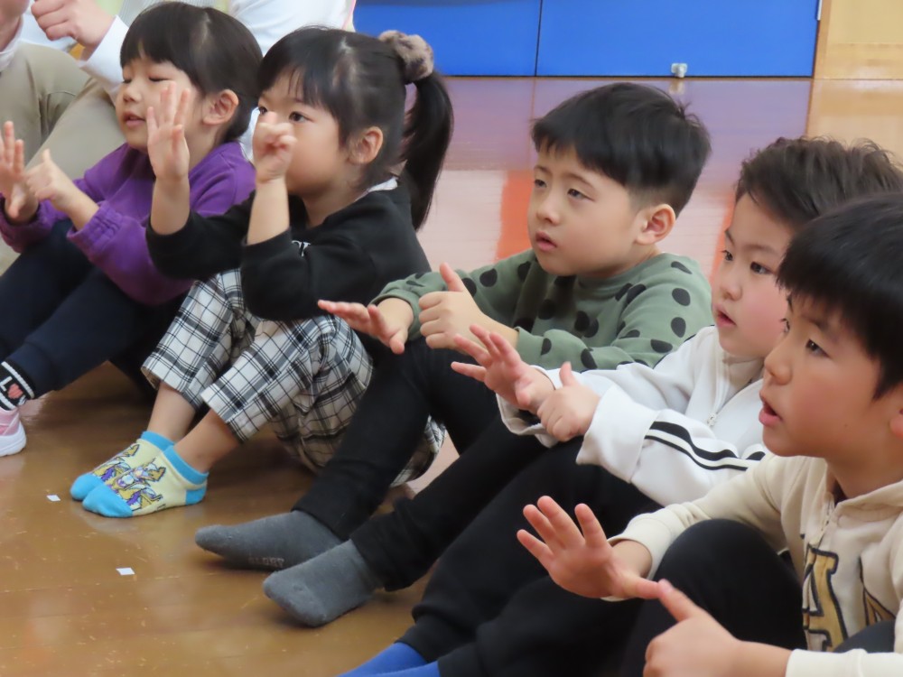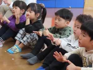 今日は今年度最後、きりんさんにとっては保育園最後の英語教室がありました。